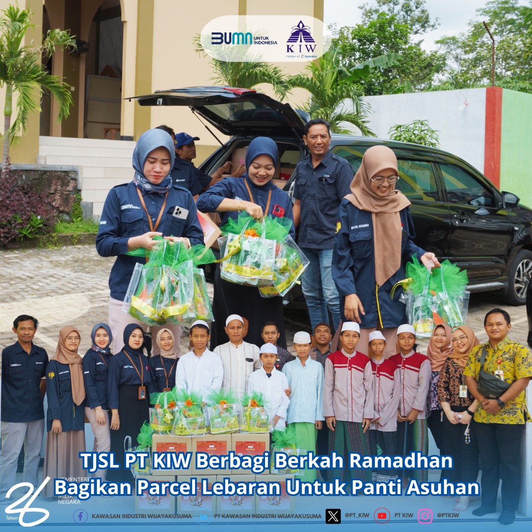 Hari Selasa, tanggal 02 April 2024, Tim Tanggung Jawab Sosial Lingkungan (TJSL) bersama karyawan dari PT Kawasan Industri Wijayakusuma (KIW) melaksanakan aksi sosial dengan mendistribusikan parcel lebaran kepada beberapa panti asuhan di sekitar wilayah lingkungan PT KIW. Keberadaan panti asuhan dan yayasan menjadi fokus utama dalam upaya memberikan kontribusi positif bagi masyarakat sekitar.