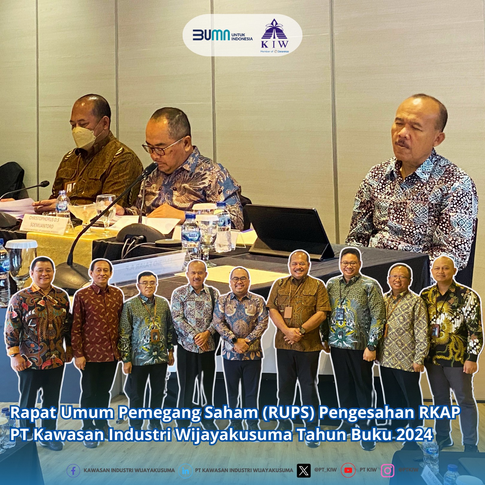 Rapat ini dihadiri oleh Kementerian BUMN yang menguasakan langsung kepada PT Danareksa (Persero) yang dihadiri; Direktur Investasi 1 PT Danareksa (Persero) selaku kuasa Pemegang Saham Perseroan sekaligus Pimpinan Rapat, Bapak Christophorus Dedy Setiawan Soemijantoro; Perwakilan Pemegang Saham dari Pemerintah Provinsi Jawa Tengah, Bapak Dr. Ir. Sujarwanto Dwiatmoko M.Si (Asisten Ekonomi dan Pembangunan Setda Provinsi Jawa Tengah) dan jajaran ; Perwakilan Pemegang Saham dari Pemerintah Kabupaten Cilacap, Bapak Drs. Mohamad Wijaya, MM (Asisten Perekonomian dan Pembangunan Sekda Kabupaten Cilacap) dan jajaran; Dewan Komisaris PT KIW, Bapak Prasetyo Aribowo (Komisaris Utama), Bapak Anton Santosa (Komisaris) dan Bapak Andrie Tardiwan Utama (Komisaris Independen); Direksi PT KIW, Bapak Ahmad Fauzie Nur (Direktur Utama), Bapak Sugeng Riyanto (Direktur Operasional), dan Bapak Riki Indrianto (Direktur Keuangan dan Manajemen Risiko); dan Notaris Ibu Dini Lastari Siburian, SH. Rapat Umum Pemegang Saham (RUPS) adalah pertemuan tahunan yang diadakan oleh PT Kawasan Industri Wijayakusuma untuk mengumpulkan para pemegang saham dan mengambil keputusan penting mengenai perusahaan. Dalam RUPS tahun 2024, para pemegang saham akan diberi kesempatan untuk memberikan tanggapan atas Rencana Kerja dan Anggaran Perusahaan (RKAP) tahun 2024. RKAP ini mencakup rencana bisnis dan anggaran keuangan perusahaan untuk tahun 2024. Pada RUPS RKAP Tahun 2024 PT Kawasan Industri Wijayakusuma Konsolidasi membahas beberapa agenda, salah satunya mengenai rencana bisnis dan strategi perusahaan, tata kelola yang baik, dan program kerja untuk tahun 2024. Hal ini penting dilakukan karena RKAP menjadi dasar bagi pengambilan keputusan yang dilakukan oleh perusahaan selama tahun 2024, sehingga diperlukan persetujuan dari para pemegang saham untuk menjamin bahwa rencana yang diambil sesuai dengan kepentingan perusahaan dan pemegang saham.