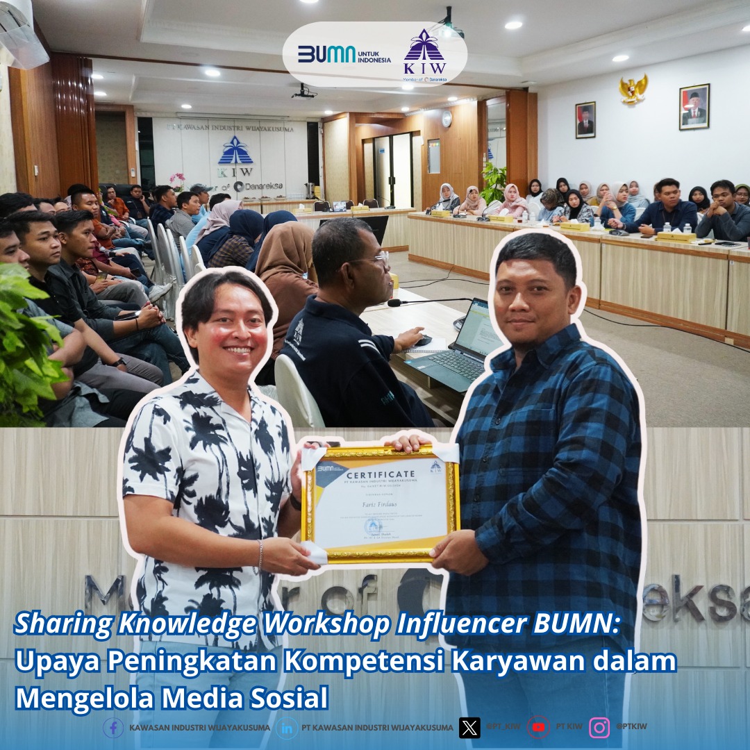Pada hari Jum'at, 02 Februari 2024, PT KIW memulai awal bulan dengan menggelar kegiatan Sharing Knowledge Workshop Influencer BUMN yang dihadiri oleh seluruh karyawan. Kegiatan ini dipandu oleh Fariz Firdaus, yang menjabat sebagai Corcom & CESR. Fariz sebelumnya telah mengikuti workshop serupa pada tanggal 11-13 Januari di Magelang.