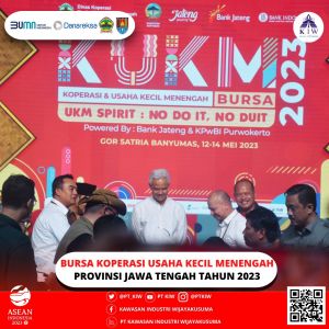 Purwokerto, 14 Mei 2023 - Pada tanggal 12 hingga 14 Mei 2023, Pemerintah Provinsi Jawa Tengah menyelenggarakan acara Bursa Koperasi Usaha Kecil Menengah (KUKM) 2023 di Gedung Olahraga (GOR) Satria Purwokerto, Kabupaten Banyumas. Acara tersebut berhasil menciptakan kolaborasi antara Organisasi Perangkat Daerah (OPD) di lingkungan Pemerintah Provinsi Jawa Tengah, Pemerintah Kabupaten/Kota se-Jawa Tengah, perbankan, akademisi, BUMN/BUMD, serta sektor swasta.