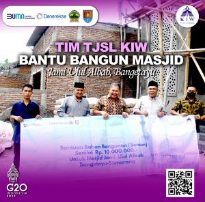 Kamis 24 November 2022 team TJSL PT KIW kembali menyalurkan bantuan untuk pembangunan Masjid Jami’ Ulul Albab di daerah Bangetayu Kota Semarang.