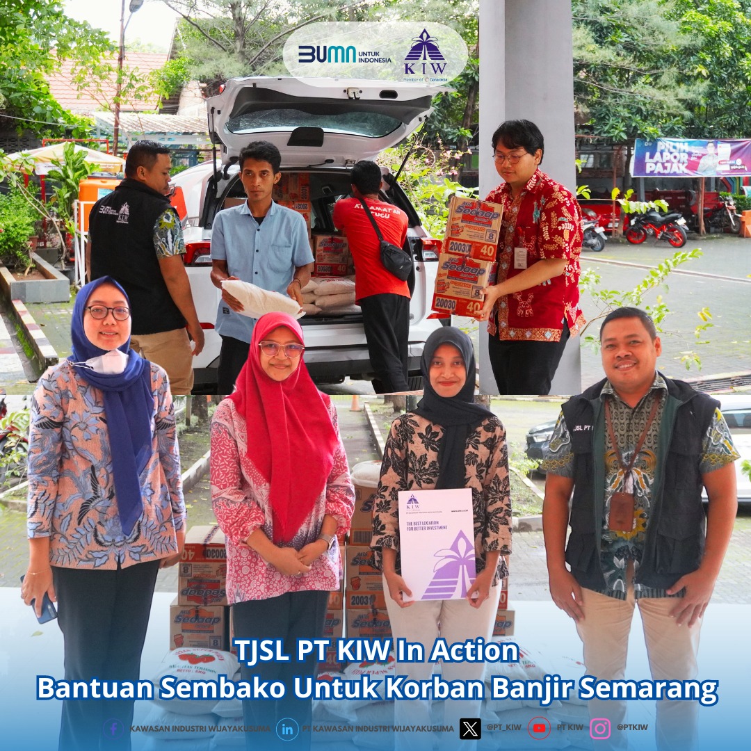 Tim Tanggung Jawab Sosial Lingkungan (TJSL) PT Kawasan Industri Wijayakusuma (KIW) menunjukkan kepeduliannya terhadap musibah banjir yang melanda Kota Semarang. Pada tanggal 14 Maret 2024, PT KIW dengan sigap memberikan bantuan kepada korban banjir di wilayah tersebut.