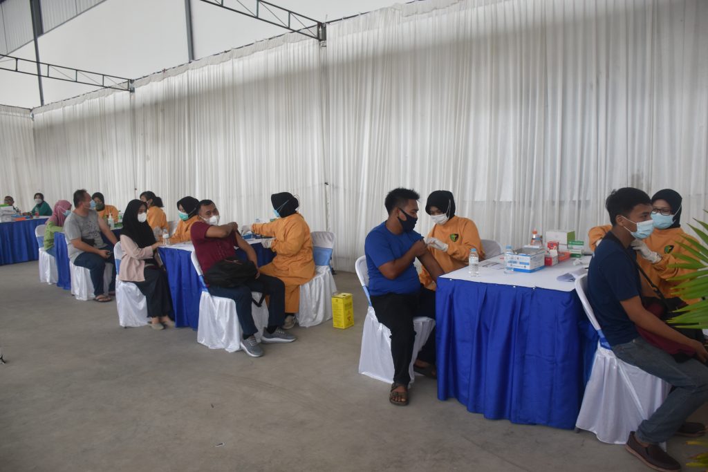 Ribuan karyawan memadati gedung BPSP X PT KIW (Persero) guna melaksanakan vaksin kedua yang diselenggarakan oleh PT KIW (Persero) pada Selasa, 19 Oktober 2021.