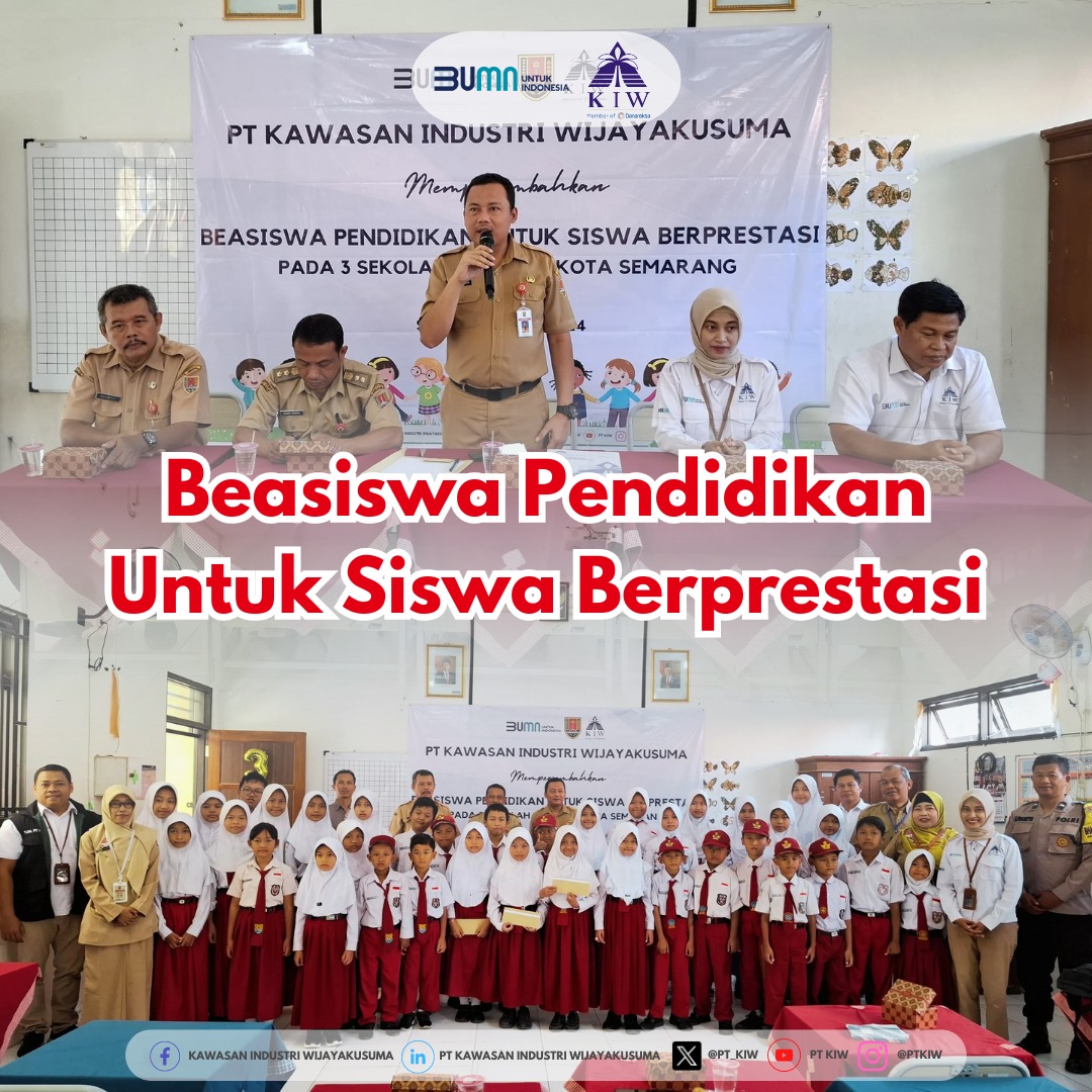 Semarang, 15 Juli 2024 – PT Kawasan Industri Wijayakusuma (KIW) kembali menunjukkan komitmennya dalam mendukung pendidikan di Indonesia melalui pemberian bantuan beasiswa untuk siswa tingkat Sekolah Dasar (SD) Tahun 2024 di Kota Semarang. Bantuan beasiswa ini merupakan bagian dari Pilar Sosial TPB 4 yang berfokus pada pendidikan berkualitas.